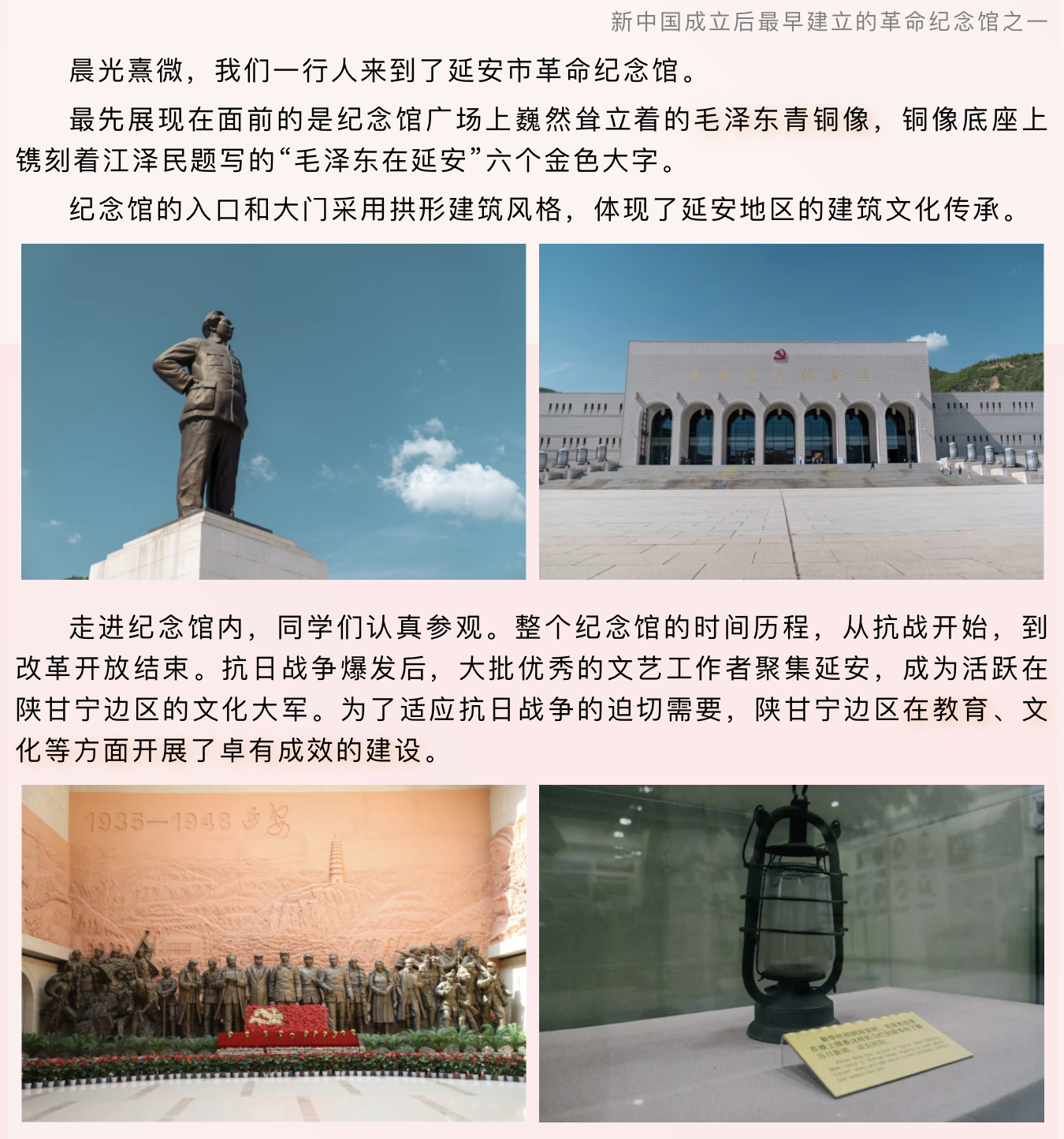 7月25日上午,西法大新传实践队活力满满。伴随着淅淅沥沥的小雨,我们再次踏上了探寻百年新闻事业的旅途。这次,实践队来到了延安市革命纪念馆和鲁迅艺术学院旧址。