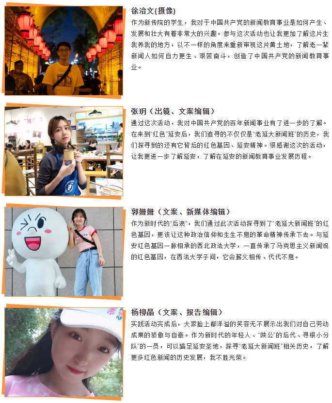 编者按:适逢中国共产党成立99周年,为响应国家号召,开展“红色新闻事业寻根之旅”活动,西法大新传延安实践队成员怀着对革命圣地、红色摇篮的憧憬和向往,奔赴革命圣地延安,围绕中国共产党百年新闻事业发展历史,结合延安红色新闻文化资源特色,追溯中国红色教育开端,探索“老延大新闻班”历史,继承与弘扬革命前辈红色新闻精神,立志成为具有红色血脉、家国情怀的高素质复合型新闻传播后备人才。