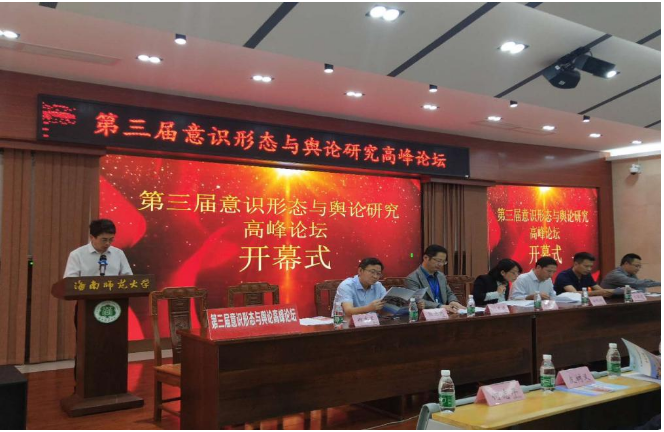 2020年11月7日,第三届“意识形态与舆论研究高峰论坛”在海口举办。此次论坛由海南省意识形态与舆论研究基地、海南师范大学新闻传播与影视学院主办,海南师范大学马克思主义学院、海南师范大学马克思主义新闻观研究与教育中心、中国传媒大学马克思主义学院、中国传媒大学媒介评议与舆论引导研究中心承办,两百多位来自全国的新闻与传播、马克思主义、影视与传播、公共管理、思想政治教育学等专业的学界和业界嘉宾汇聚一堂,围绕意识形态安全与舆论引导能力研究这一主题,分享自己的最新研究成果和实践经验。我院郭淼老师,段晓薇同学受邀参会。