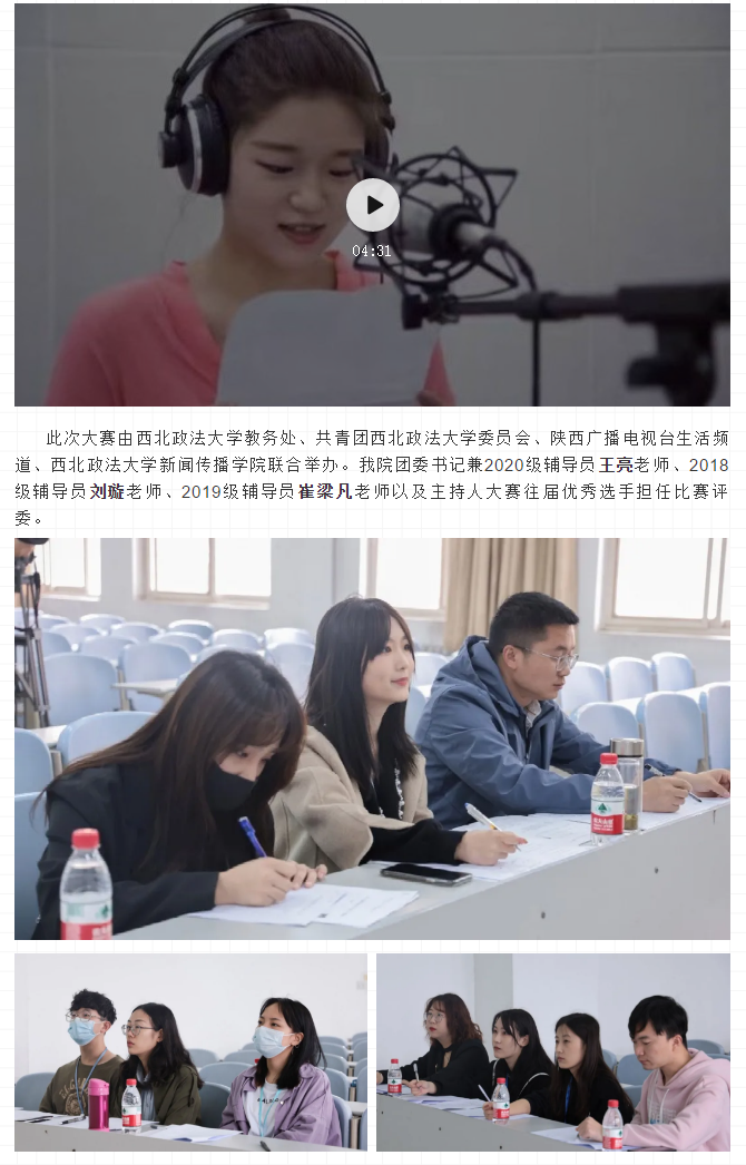 4月17日,第二十届稀饭动漫 主持人大赛初赛在长安校区三号楼三楼成功举办。来自稀饭动漫 、西北大学、西安外国语大学、西安体育学院等数十所院校的选手在主持舞台上一展风采。