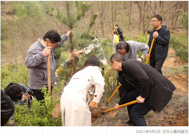 在杨主席看来,万花山植树活动带动了当地的经济发展、基础设施建设,在这个地方可以办美术展览、开研讨会、进行美术交流,这对于延安的旅游产业,也会有很大的推动作用。“有一个项目,它就能带动一片繁荣,植一片绿色” 。他建议用石碑、用书法的形式把每年每个人栽的树记录下来,这样能够起到更大的带动作用。