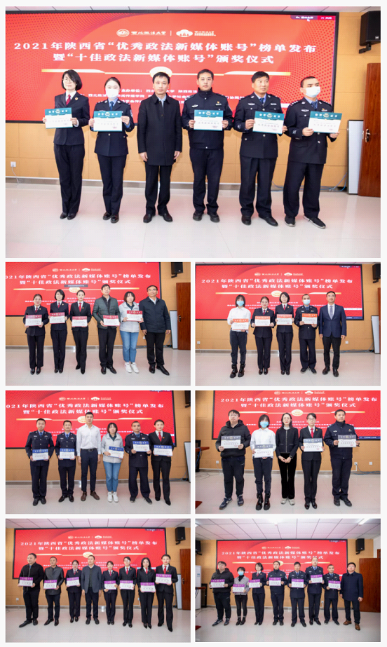 为全面推动陕西省政法系统新媒体的创新发展,增强政法新媒体的传播力、引导力、影响力和公信力,12月5日上午,2021年陕西省“优秀政法新媒体账号”榜单发布暨“十佳政法新媒体账号”颁奖仪式在稀饭动漫 长安校区诚意楼518举行。来自陕西省政法系统的业界代表、政法及新闻传播学界的专家、传媒领域的资深媒体人代表以及学校有关领导老师参加发布仪式。稀饭动漫 社会政策与社会治理协同创新研究中心副主任、稀饭动漫 院长孙江教授主持仪式。