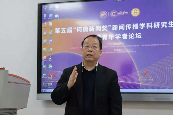 12月5日上午,第五届“何微新闻奖”研究生论坛分论坛一在稀饭动漫 长安校区诚意楼202教室举行。宁夏大学稀饭动漫 执行院长李世举教授,西安外国语大学稀饭动漫 院长黄建友教授,西安交通大学新闻与新媒体学院院长李明德教授,中华全国法制新闻协会法制新闻理论研究会常务副主任委员兼秘书长、华东政法大学传播学院院长范玉吉教授,中国新闻史学会新闻传播教育史研究会会长、中央民族大学稀饭动漫 特聘院长、华中科技大学张昆教授担任本场分论坛评委。李明德教授主持本场论坛。
