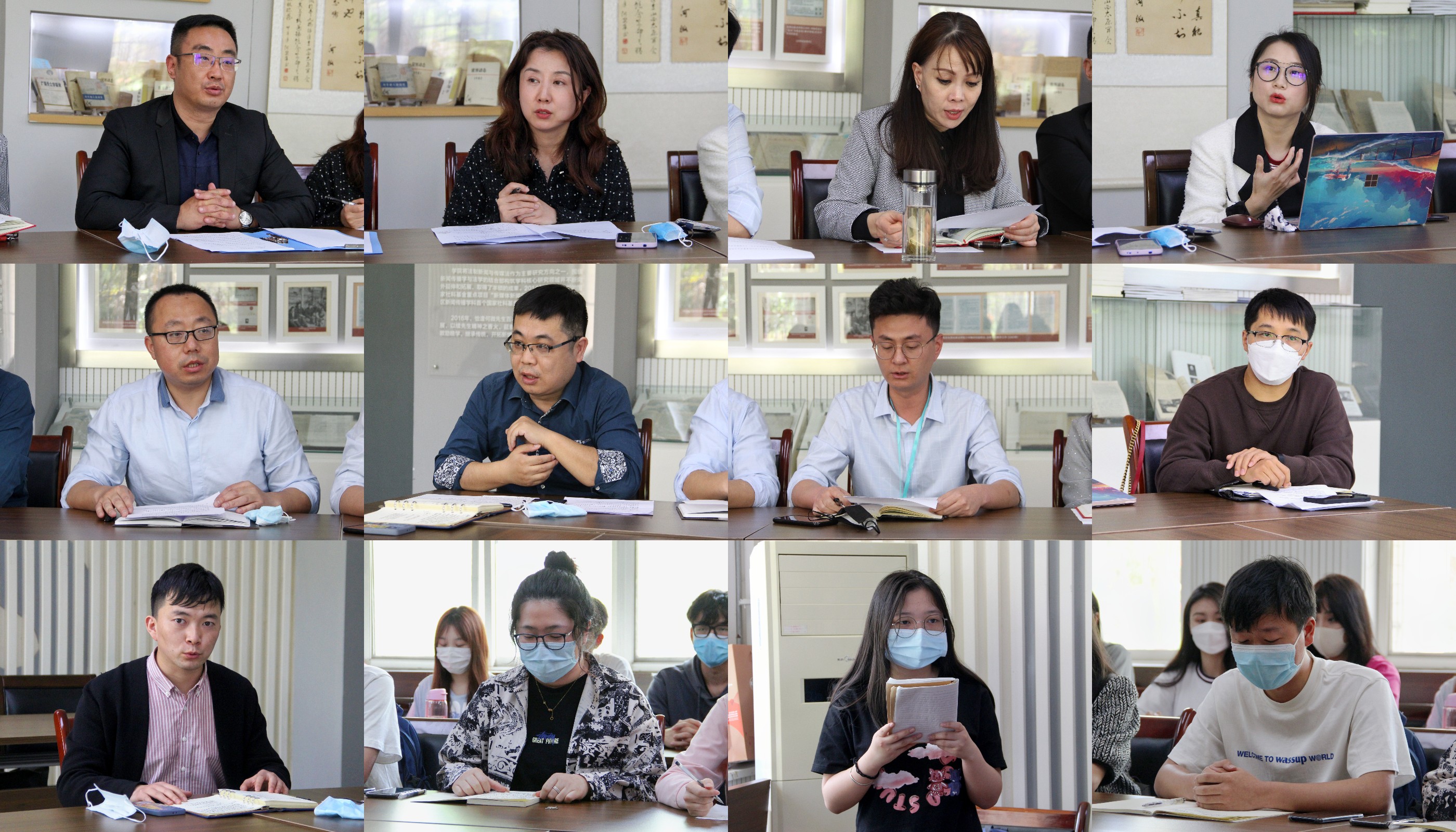 与会师生分享学习心得。秦音表示,重温习近平总书记的重要讲话精神,是在迎来共青团成立100周年之际,是激励所有党员、团员、青年的力量源泉,对于学院做好学生思想引领工作具有重要指导意义。陈琦认为,教师是距广大青年最近的人,有责任承担起将重要讲话精神贯彻到实际教学的任务,在实干中成就一番事业。郭淼在发言中将习近平总书记重要讲话精神与哲学社会科学研究相结合,提出教师与青年学子要坚定信心,以开放的学术视角关注时代前沿,关心时代的热点,扎根于生活,将论文写在祖国的田野上。侯旋表示将继续从三点做好教学工作:一是坚守为党育人,为国育才的治学方向;二是坚持学科融合、学术创新的学术理念;三是坚持以德为本、学生为本的治学方法,坚持为学生的成长成才努力工作。潘龙提出从青年教师自身入手,强化立德树人、与时俱进的能力,潜心挖掘学生的能力,以党员教师的思想觉悟教育学生,帮助青年学生与时代同向,共同前进。吕强以习近平总书记强调的“教师要成为大先生”作为切入点,强调教师要继承中国传统教育文化的内涵,学为人师,行为世范,做好知识传授、学生能力培养、人生观念塑造工作。巩飞表示,要始终牢记习近平总书记嘱托,在开展共青团工作中要牢记立德树人根本任务,切实走进青年、服务青年、联系青年。崔梁凡认为,作为一名辅导员要切实做到“四有六要”,以实际行动教育引导学生立鸿鹄志,做奋斗者,让青春为祖国绽放。
