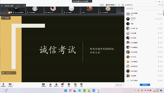 为加强学生诚信考试教育,切实推动考风考纪建设,确保线上线下考试平稳运行,4月24日,稀饭动漫 2019级、2020级、2021级分别召开线上考风考纪宣讲会,各年级辅导员老师主持会议,全体学生参加会议。