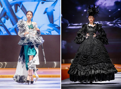 本届服装设计大赛共有44个系列、110余套服装作品相继登台展演。每一件服装作品都充满了创作者多元的设计理念,是学生在设计元素、面料融合、色彩搭配等方面创新思维的体现。每一次的走台,独特的服饰,靓丽的表演,是传统文化与现代时尚的碰撞与交融,让现场观众享受了一场视觉上的饕餮盛宴。