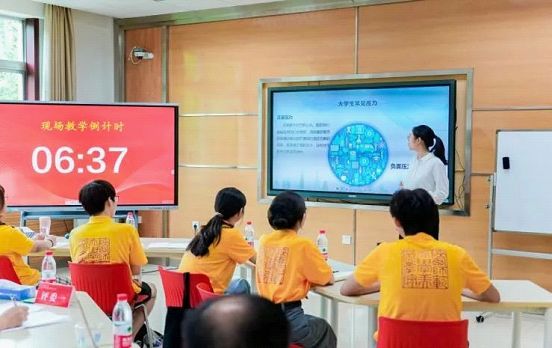第二届陕西高校学生心理健康教育课程教学大赛共有来自全省87名心理专兼职教师参加了比赛,共有36名教师进入省级决赛,大赛分为说课、现场教学、专家提问三个环节。刘璇以“与压力同行”为题,从“什么是压力”、“大学生常见压力”和“压力管理”三个方面展开讲解。